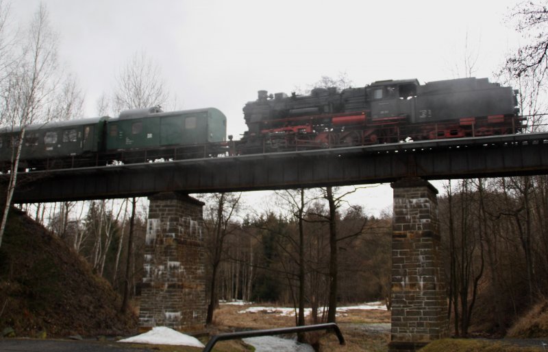 58 311 und 58 261 mit einem Güterzug zum Saisonauftakt im SEM-Chemnitz am 04.04.09