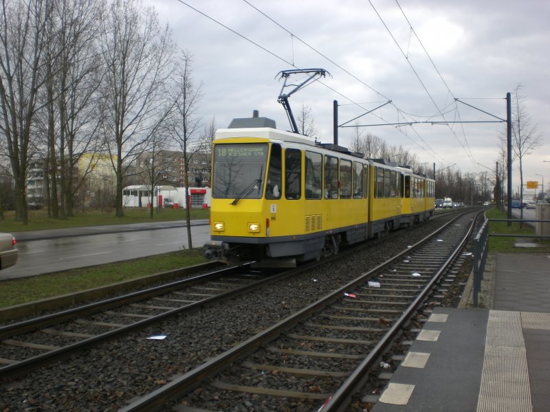 Berlin: Straßenbahnlinie 18 nach Hellersdorf Risaer Straße an der Haltestelle Marzahn Landsberger Allee/Blumberger Damm.
