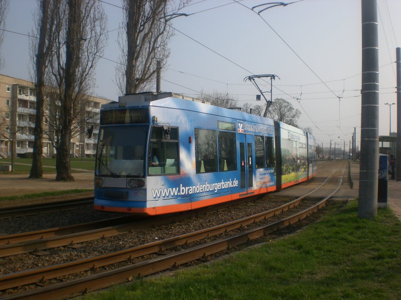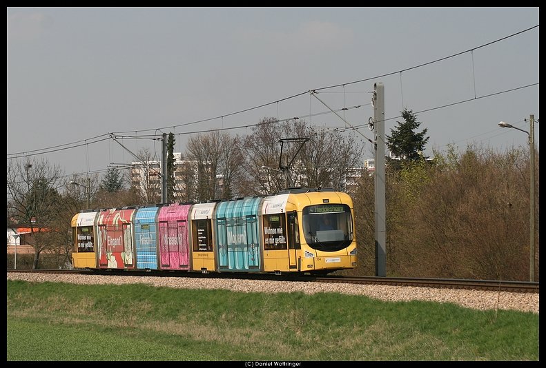 Wagen 704 der MVV im Niemandsland. Hinter dem Wagen liegt Vogelstang und Käfertal, in Fahrtrichtung rechts liegt Feudenheim und Wallstadt und vor dem Wagen liegt auch Wallstadt... 03. April 2009
