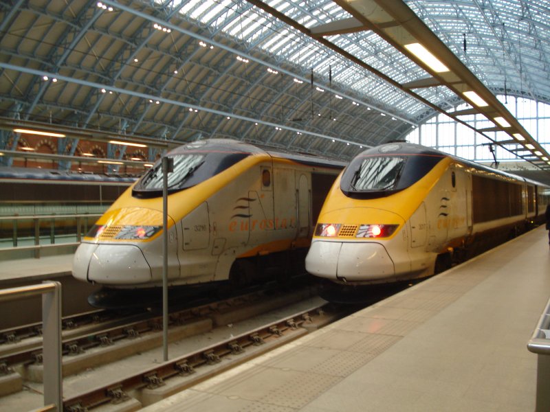 Die beiden Eurostars 3216 und 3017 am Morgen des 04.04.09 in London St Pancras International.