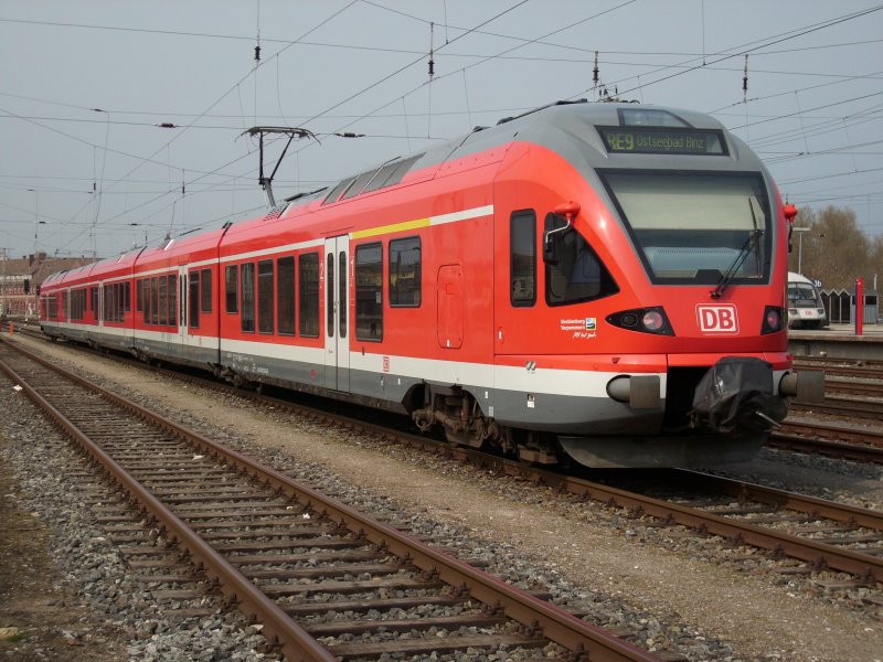 Flirt 429 029 als RE 33214 Sassnitz-Rostock im Bahnhof von Stralsund.