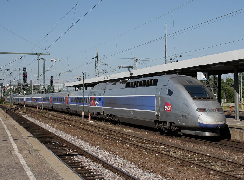 Der TGV POS 4408 am 01.08.2009 bei der Ausfahrt aus dem Stuttgarter Hbf.