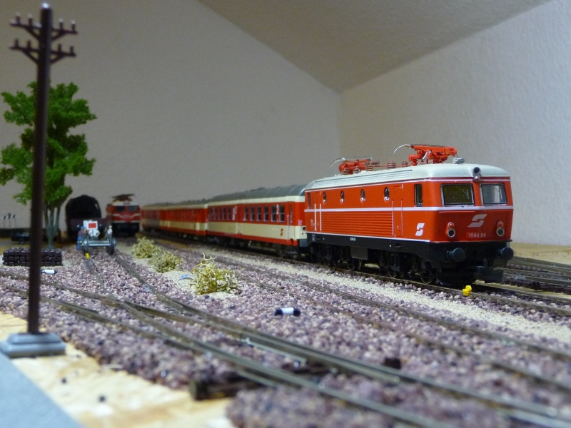 Tagsüber zieht eine 1043 diesen Reginalzug, am Foto ist es die 1043.01. In der Nacht legt die 1043 eine Pause ein und eine 1044 übernimmt ihre Aufgabe. (10.08.09)