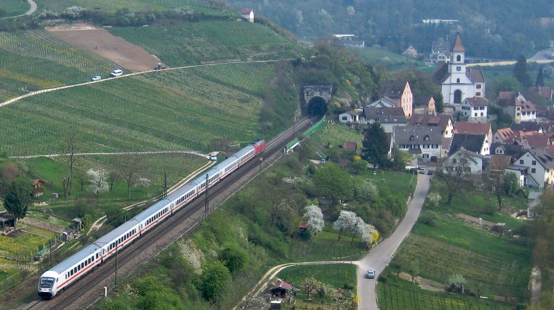 Ein IC in Richtung Offenburg, aufgenommen am 14. April 2009 am Isteiner Klotz (Nun begradigt, danke für den Hinweis!)