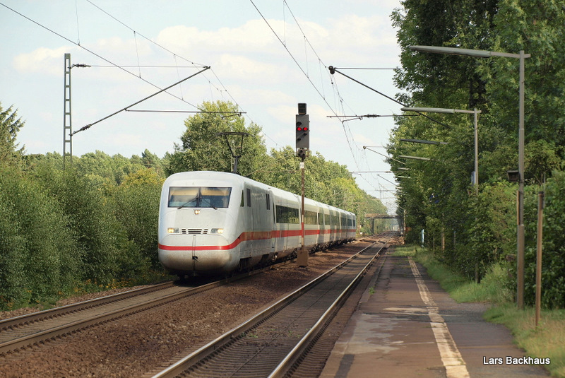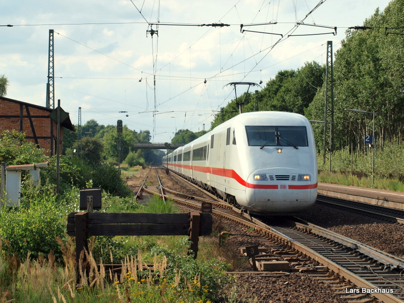 ICE 883 nach München Hbf brettert am 16.08.09 mit 200 km/h durch Radbruch Richtung Hannover. Aufgenommen wurde das Bild mit einer 150er Brennweite.