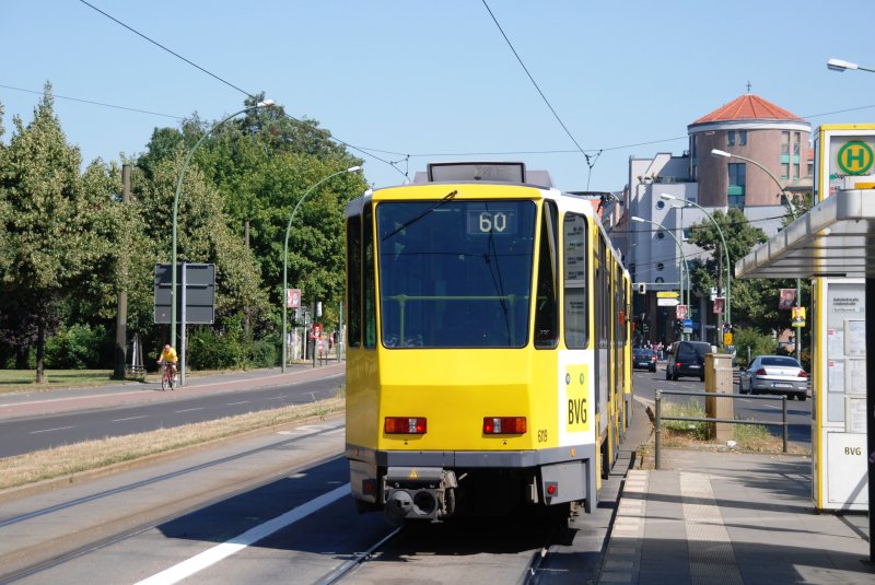 BERLIN, 16.08.2009, Tram60 bei der Einfahrt in die Endhaltestelle S-Bahnhof Adlershof
