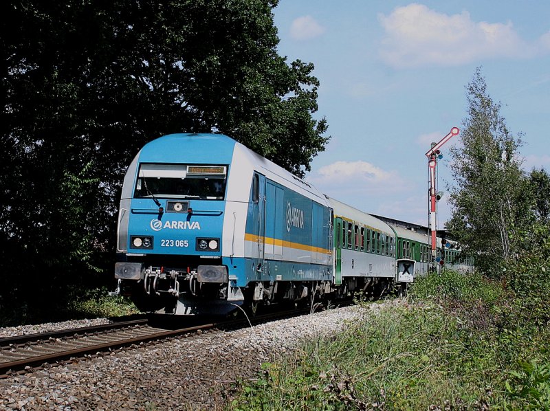 Die 223 065 mit dem ALEX nach München am 15.08.2009 unterwegs bei Arnschwang