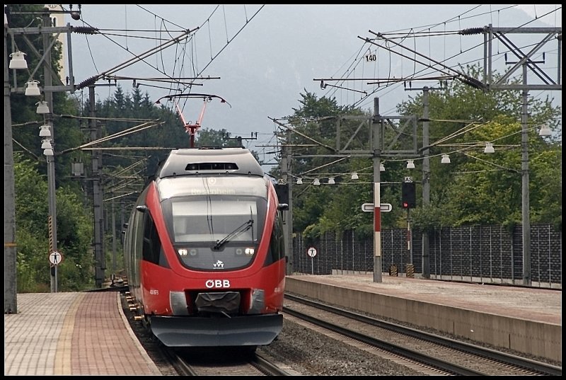 4024 067 und 4024 083 erreichen auf dem Weg nach Rosenheim den Bahnhof Kirchbichl.