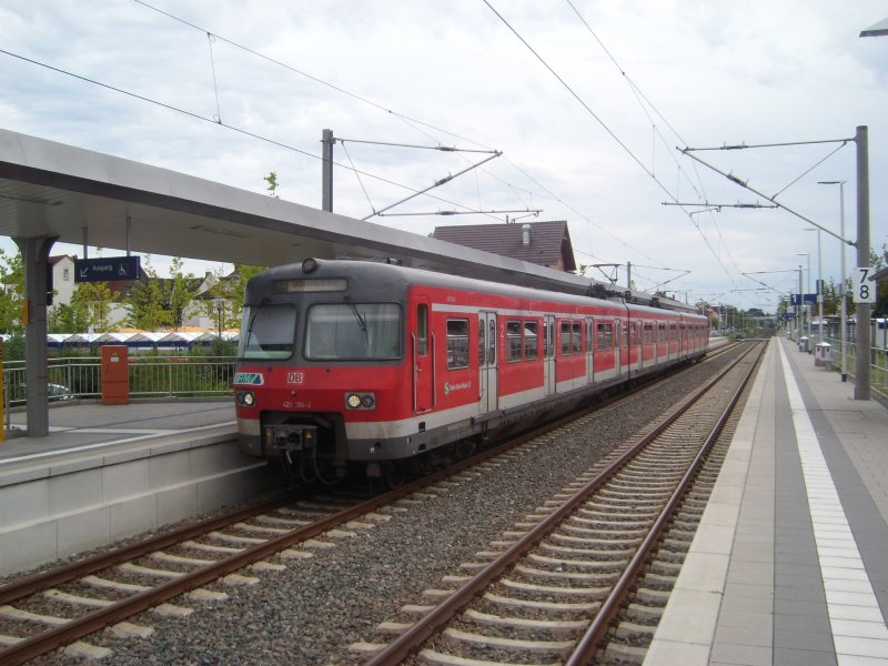 Am 27.07.09 steht der LED-Versuchsträger 420 316-2 als HVZ-Verstärker auf der Linie S2 (Dietzenbach-Offenbach/M Hbf) in Heusenstamm abfahrbereit.Nächster Halt ist Offenbach-Bieber!!!
