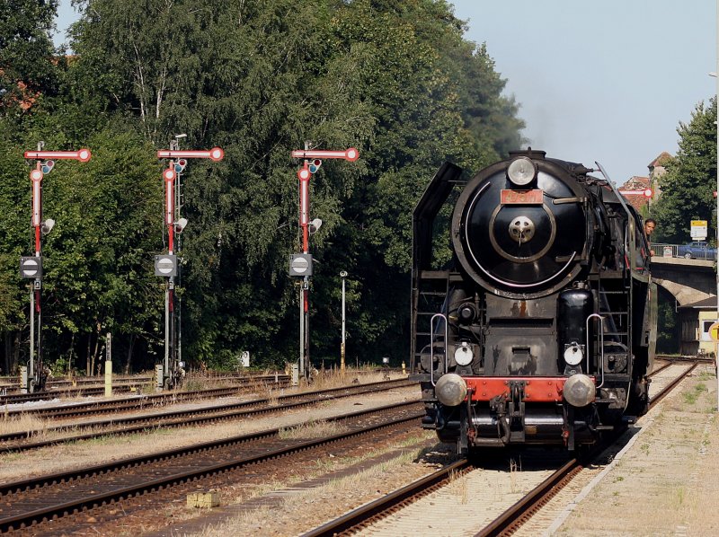 Dampflok BR 91 134 -DR- mit dem Sonderzug der MEF steht am Bahnsteig 4a zur Sonderzugfahrt nach Ludwigslust bereit, Schwerin Bf 15.08.2009