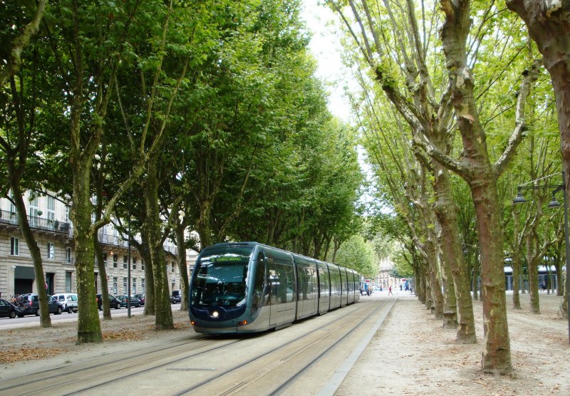 Eine Tram der Linie B fährt am Place de la Comedie am Grand Theatre vorbei. (8.8.09)