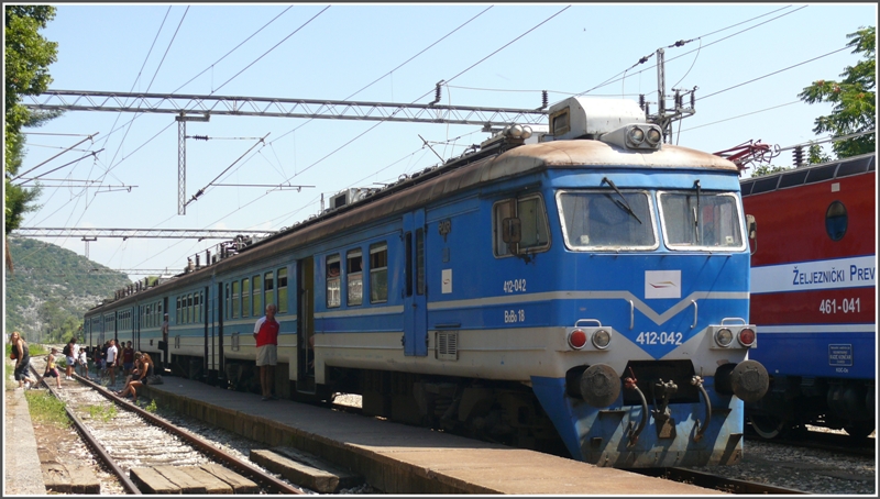 Wegen Stromausfall in Virpazar blockierter Regionalzug nach Bar in Form des 412-042. (29.07.2009)