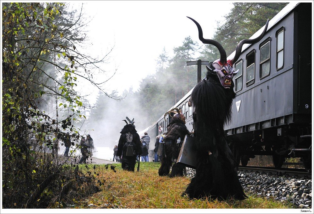 Dampflok 88.103 mit einem Krampuszug von Weizelsdorf nach Ferlach. Nähe Laiplach, 28.11.2009.