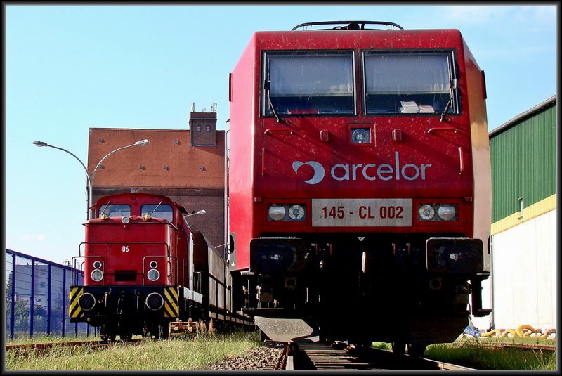 Mein heutiger Kniefall erfolgt vor der 145-CL 002 (& V60 -PBSV-) im Nordhafen von Stralsund. am 06.08.09 (Bild entstand von öffentlichem Gelände aus durch ein Tor hindurch- siehe frühere Bilder von mir. :-) )