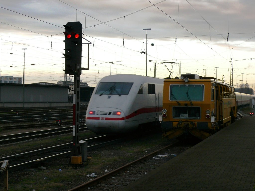 101 098-2 mit dem CNL 1201 (Talgos) nach München Ost hier am Startbahnhof in Berlin Lichtenberg. Leider war kein anderer Winkel für das Bild möglich, da sich sonst das Signal mitten auf der Zugfront befindet hätte. 05.12.2009