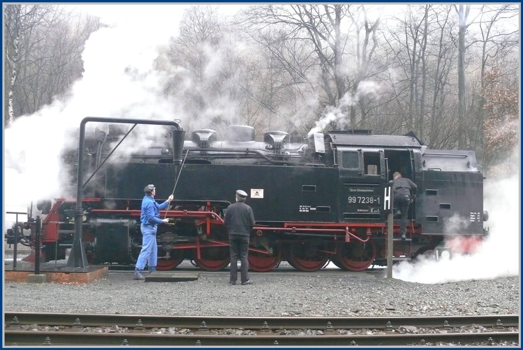 Noch ein Schwatz und dann ist fertig lustig. 99 7238-1 ist bereit für die lange Fahrt nach Wernigerode. (06.12.2009)