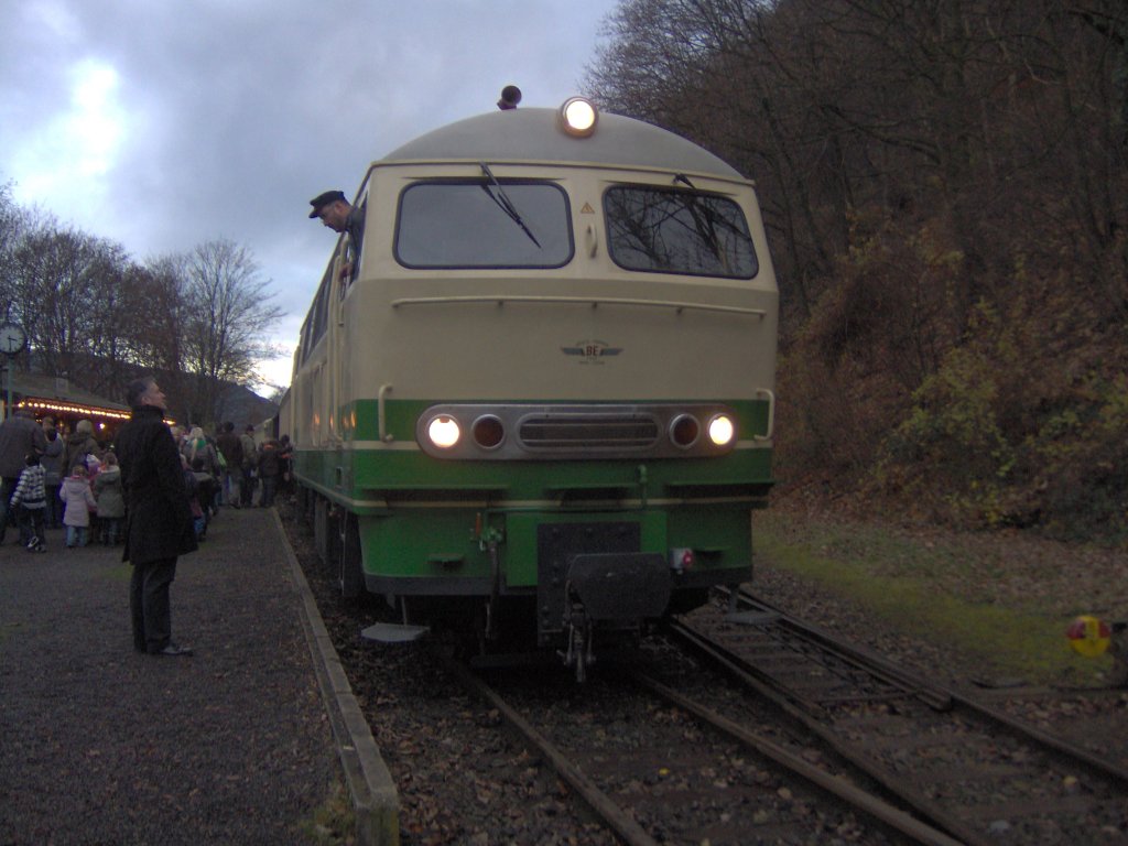 Die mit Alufensterrahmen ausgestattete 218 494-3 beendete damals als Lübecker Lok den 218-Einsatz auf der KBS 104; nun hatte sie am 11. Dezember 2009 auch die Ehre, den 218-Einsatz auf der Teckbahn zu beenden. Dem Anlass entsprechend zierten sie 2 Schilder. Hierfür nochmals danke an das Personal. Das Bild entstand in Oberlenningen.