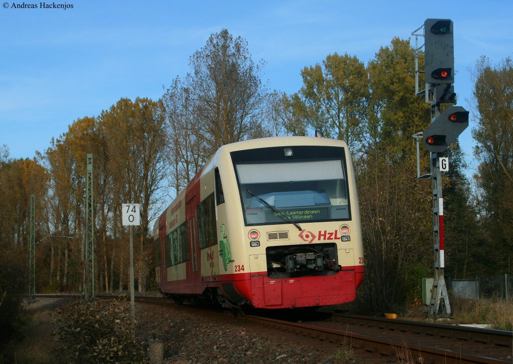 VT 234 der HzL als HzL85871 (Bräunlingen Bahnhof-Geisingen-Leipferdingen) am Esig Donaueschingen 27.10.09