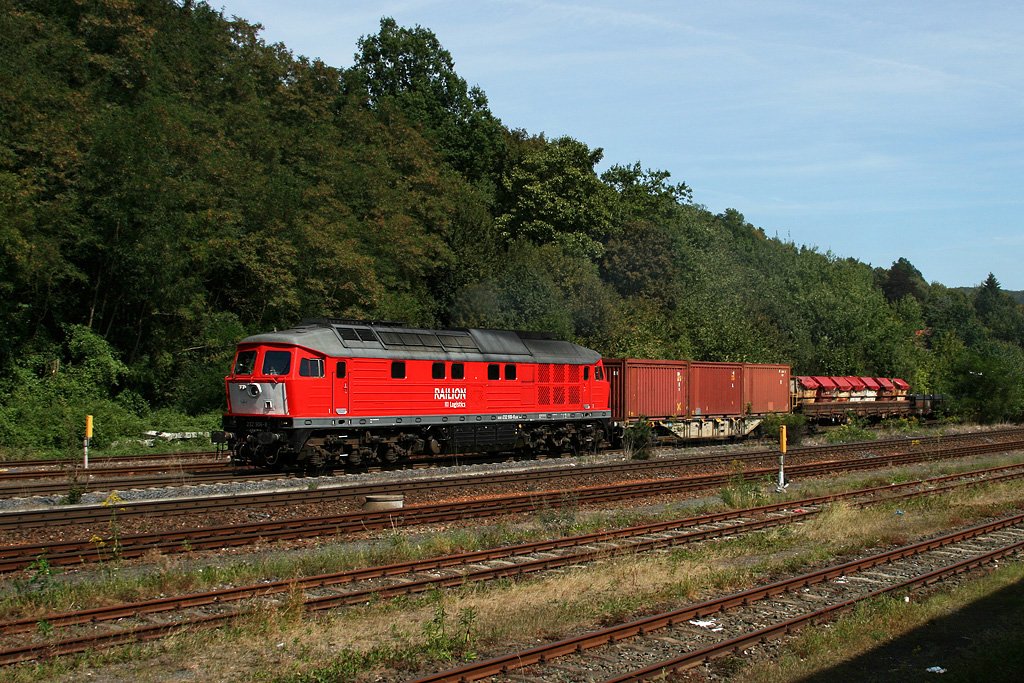 232 457 mit einem Autozug am 31.08.2009 in Hersbruck.
