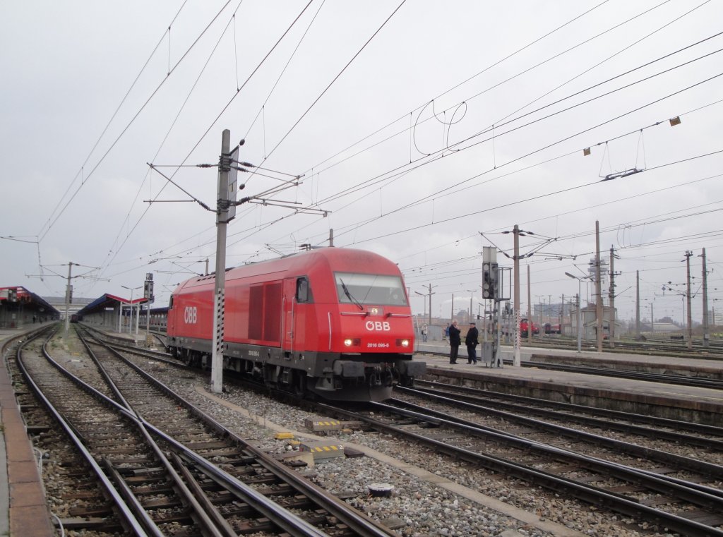 Die RailCargo Taurus 1116 steht am 12.12.09 mit einem EC von Wien West kommend in Fahrtrichtung Prag auf Gleis 7 in Wien Meidling