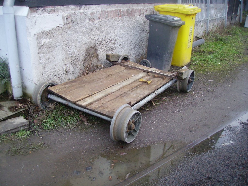 2 Normalspur Waggongs stehen auf Schmalspurwaggongs der Brohltalbahn