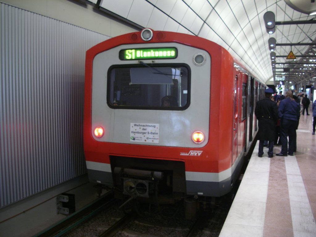Hier ist der Weinachtszug der Hamburger S-Bahn.