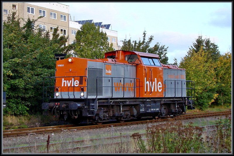 -hvle- V160.6 vor dem Bü Stralsund Werftstraße. am 09.10.09