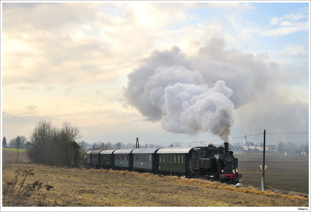 Dampflok 88.103 mit einem Krampuszug von Weizelsdorf nach Ferlach. Nähe Laiplach, 28.11.2009.