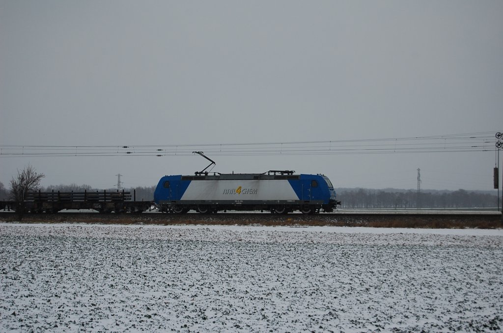 185 680-6 EVB am 19.12.2009 im Schneegestöber kurz vor Überquerung des Mittellandkanals bei Peine