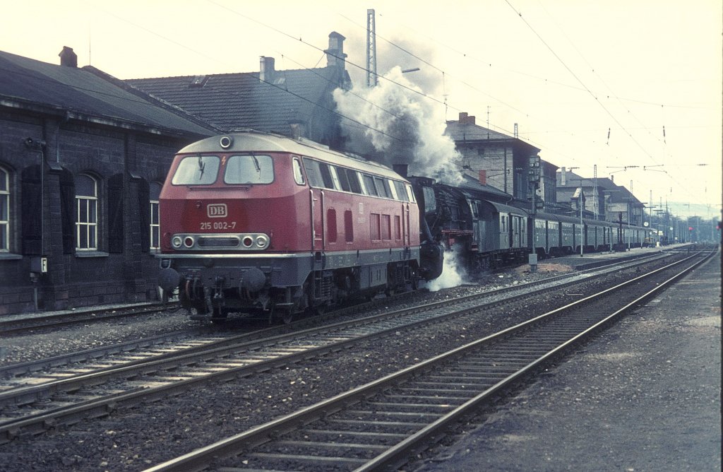 Hier mein Versuch einer kleinen Vorweihnachtsfreude für alle (N)Ostalgie-Freunde, der mir hoffentlich geglückt ist: 112 646-5 zieht einen Dampfsonderzug mit der Dampflok 65 1049 aus dem Bahnhof Ronneburg (Thür) in Richtung Gera. (19.12.2009)