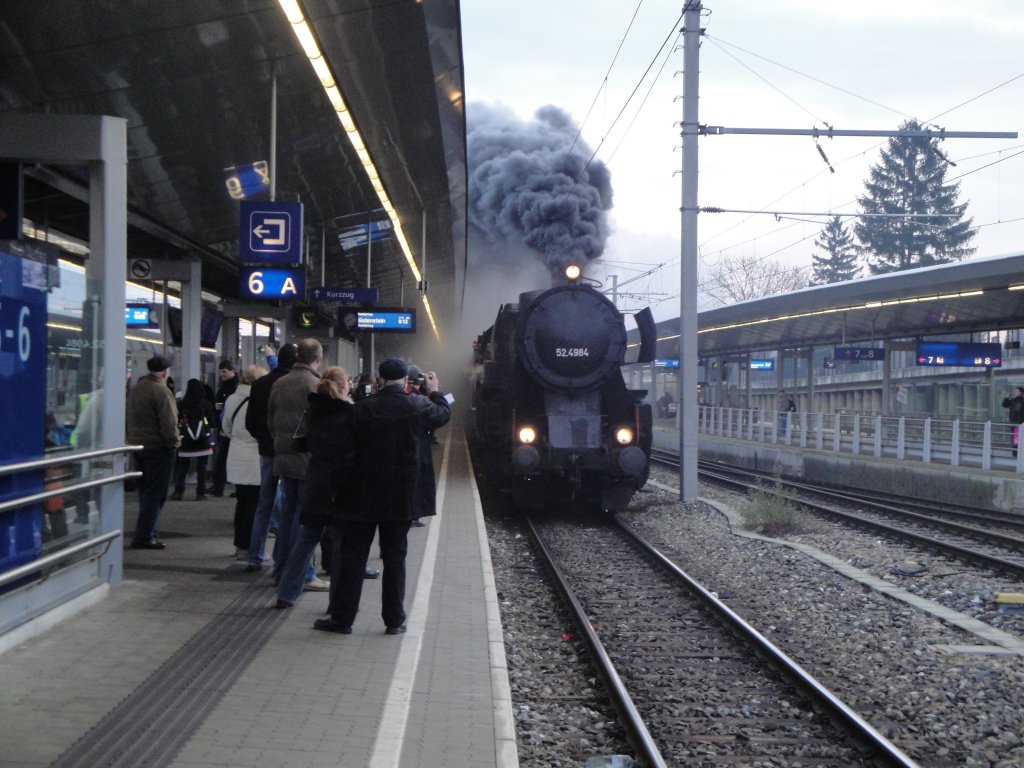 Die 52.4984 fährt in den Bahnhof Wien Meidling ein. Wie immer wenn eine Dampflok unterwegs ist bin nicht nur ich mit einem Fotoapparat bewaffnet.