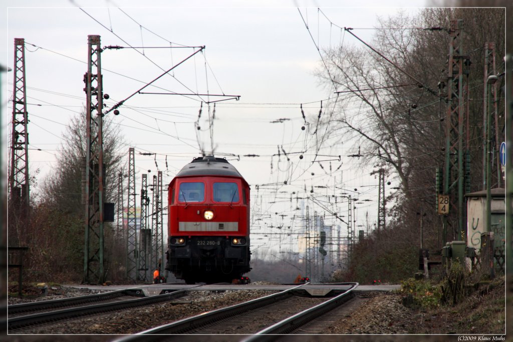 "Diesel unter Fahrdraht" 232 280-8 in Gelsenkirchen-Bismarck. --02.12.2009--