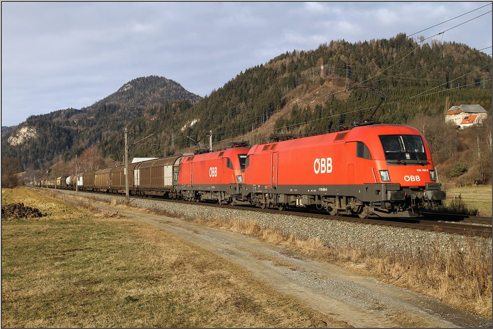1116 095 und 1116 073 ziehen den Güterzug 54754 von Villach nach Graz. Thalheim 30.12.2009