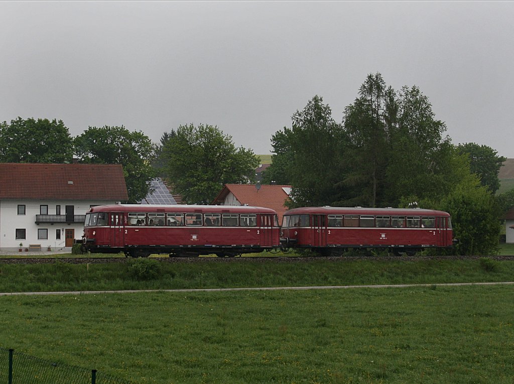 Der VT 98 der PEF am 01.05.2009 unterwegs auf der Rottalbahn bei Hulsessen