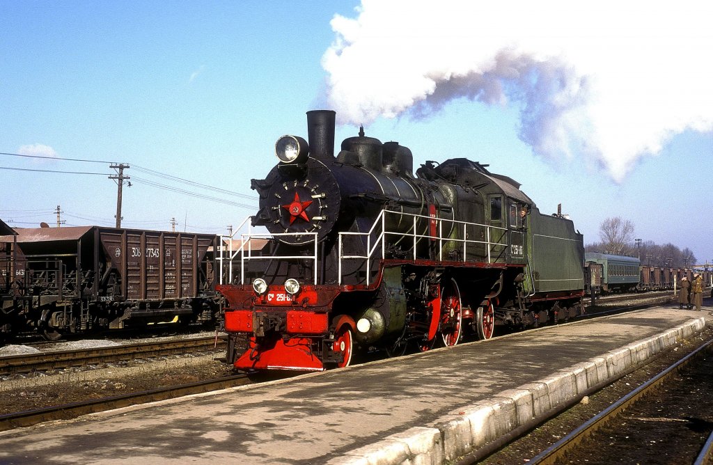 Die DB-Museumslok 50 622 im Februar 2002 vor 64 419 der DBK auf den Gleisen des ehemaligen Bw Crailsheim (digitalisiertes Dia).