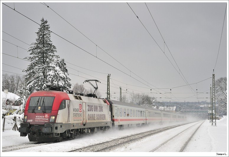 1016 047 (Wr.Städtische) bespannte am 31.1.2009 den OEC 61. Hier bei der Durchfahrt in Tullnerbach-Pressbaum.