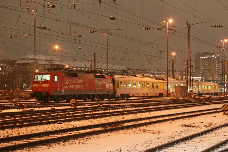 120 502 mit drei Messwagen am 28.01.2009 in München.