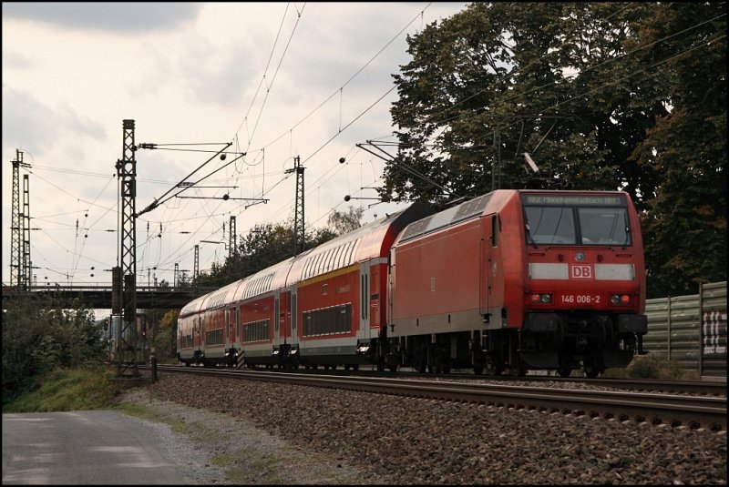 146 006 (9180 146 006-2 D-DB) schiebt den RE2 (RE 10222) "Rhein-HAARD-Express" nach Mönchengladbach Hbf. (04.10.2008)