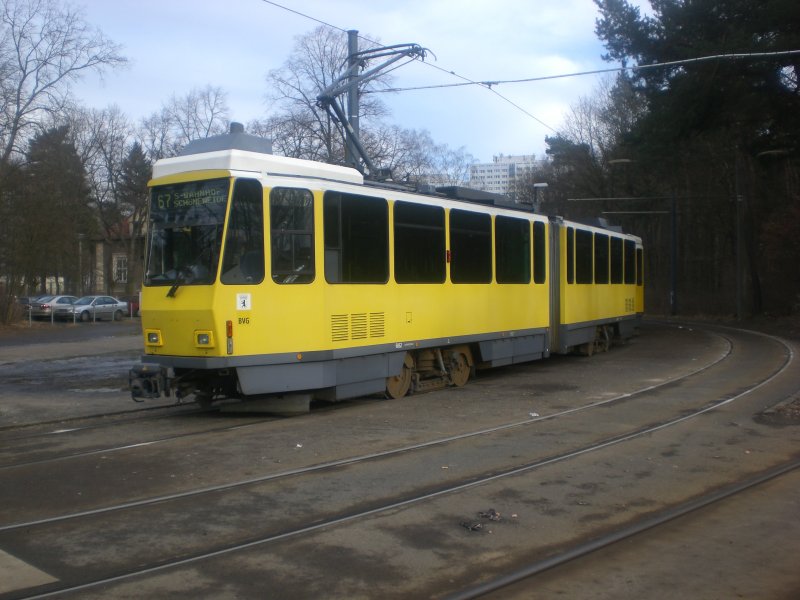 Berlin: Straßenbahnlinie 67 nach S-Bahnhof Schöneweide an der Haltestelle Krankenhaus Köpenick/Südseite.