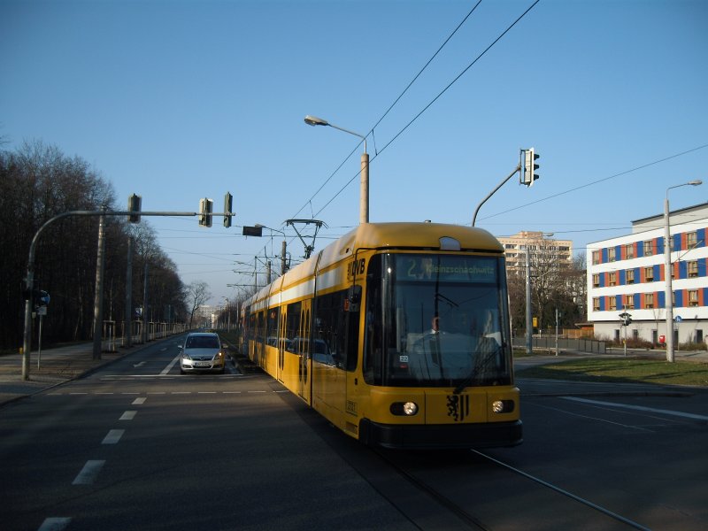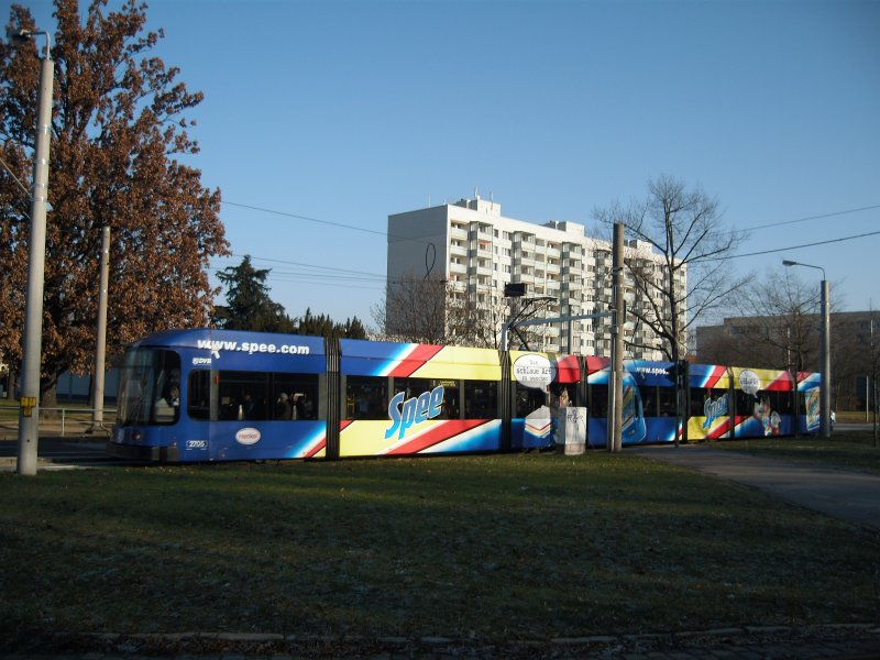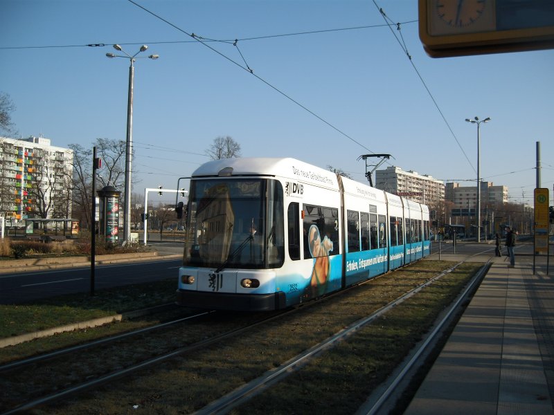 "Die schlaue Art zu .. fahren" könnte die Werbung auf dieser Bahn lauten. Dresden, Stübelallee 29.12.08