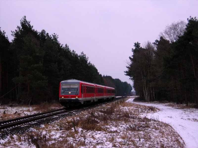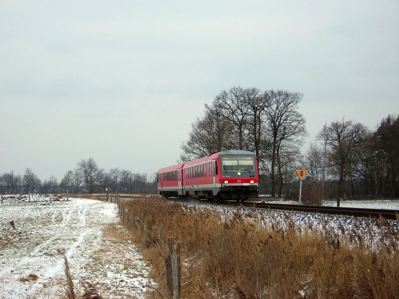Ein Desiro(BR 642) durchfährt am 30.01.09 Burgkemnitz in Richtung Bitterfeld. Solche Triebwagen sieht man auf dieser Strecke sonst nicht.