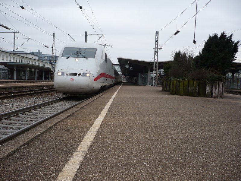 Dieser ICE der BR 401 rast am 02.2.09 durch den Göppinger Bf.