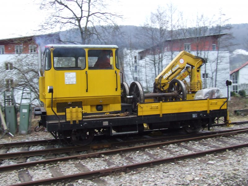 Der SKL fährt die Achsen des Postwagens vom Lokschuppen zur Drehbank in der großen Wagenhalle 31.01.09