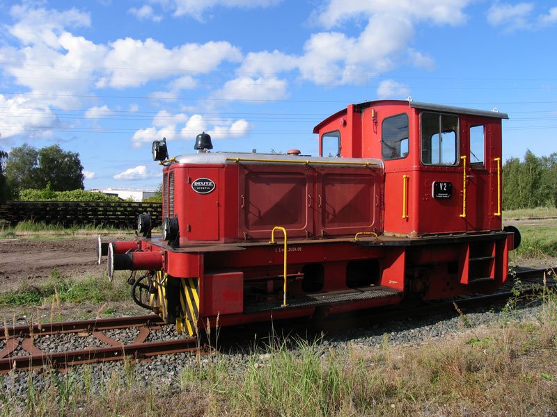 Die Diesellok V 2, gebaut 1957 von Klöckner-Humboldt-Deutz, Fabriknummer 56744, der Arbeitsgemeinschaft Geesthachter Eisenbahn wartet auf den Museumszug aus Bergedorf Süd, um an diesem bis Krümmel mitzulaufen und dort die Rangiertätigkeit zu verrichten. Geesthacht, 14.09.2008