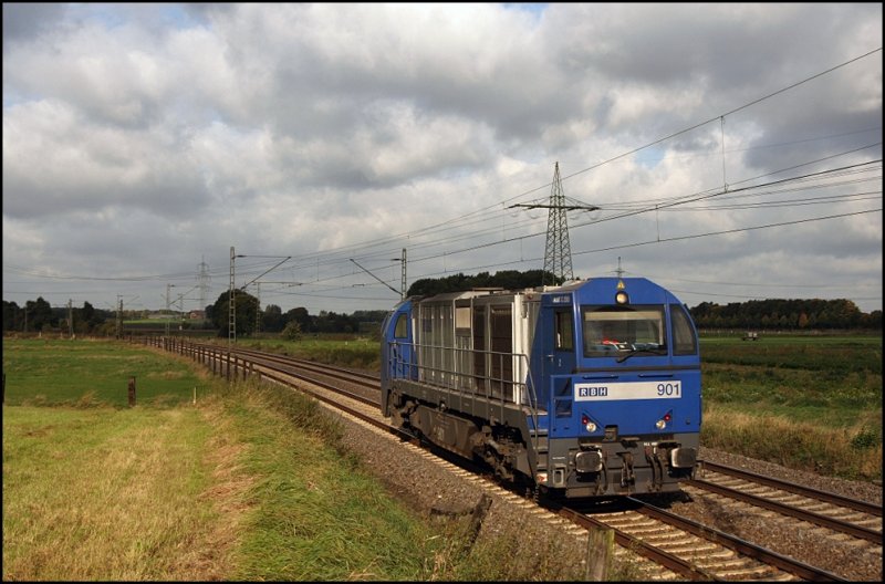 Der "Stromcontainer" 155 206 bringt einen Brammenzug bei Waltrop in Richtung Westen. (02.10.2008)