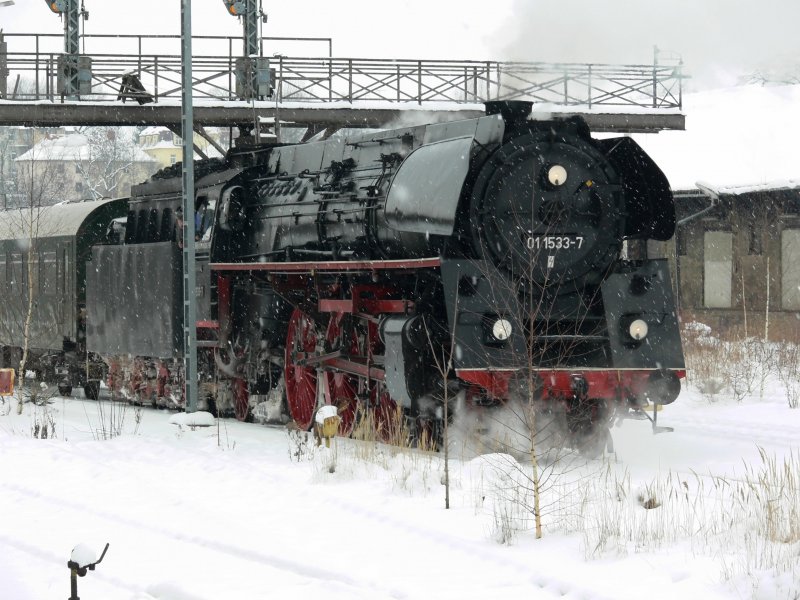 01 1533-7 der ÖGEG (ehemals DR) bei "bestem Winterwetter", am 19.02.09 mit einem Sonderzug im Bahnhof Zittau (Sachsen).