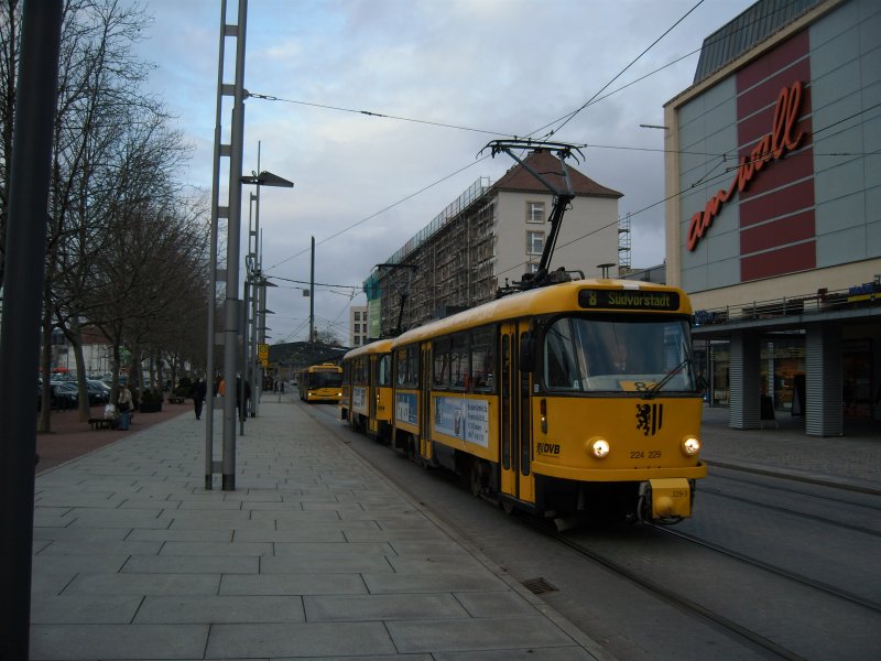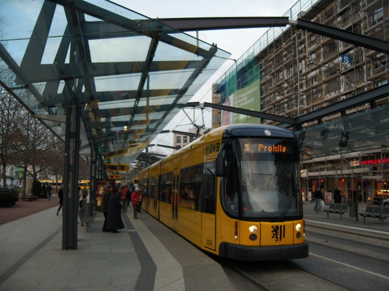 Ein Qualitätswagen auf der 2: Ein GT8 beim Zwischenhalt in der Haltestelle Strohmarkt.