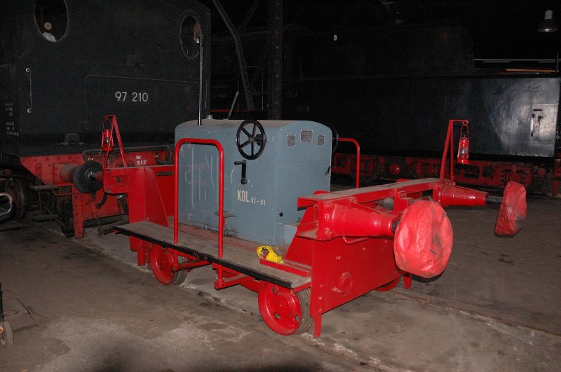 Ein uriges Gefährt: Ein Schienentraktor (Baujahr um 1930) mit sage und schreibe 36 PS im Eisenbahnmuseum Darmstadt-Kranichstein. Man beachte die damals zeitgemäße Beleuchtung. (Feb. 2009)