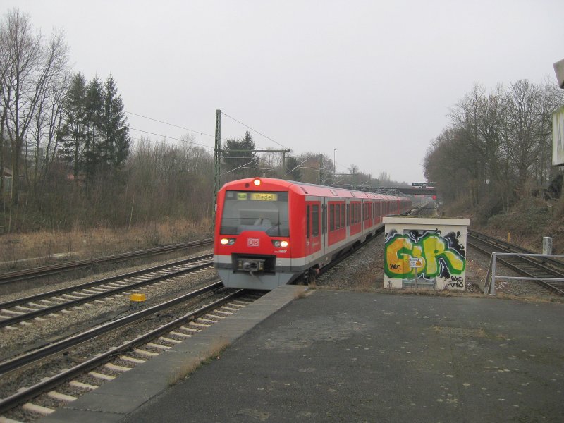 474 101-3 als S 1 nach Hamburg-Wedel beim Zwischenhalt in Hamburg-Alte Wöhr am 21.02.09.