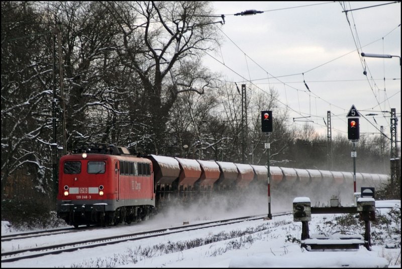 139 246 erinnert mit dem DB-Cargo Logo an alte Zeiten und ist mit einem Ganzzug in Richtung Duisburg unterwegs.